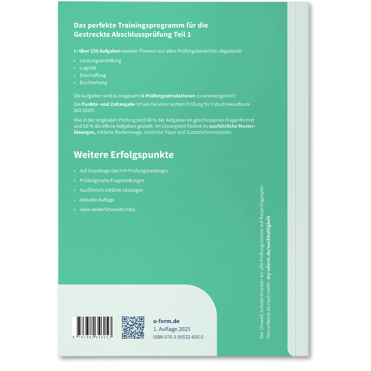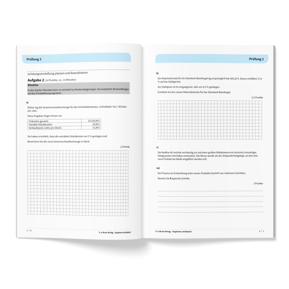 Insgesamt 6 Prüfungssimulationen wurden hier extra für die Abschlussprüfung Teil 1 der Industriekaufleute (AO 2024) zusammengestellt. So steht dir nichts im Wege.